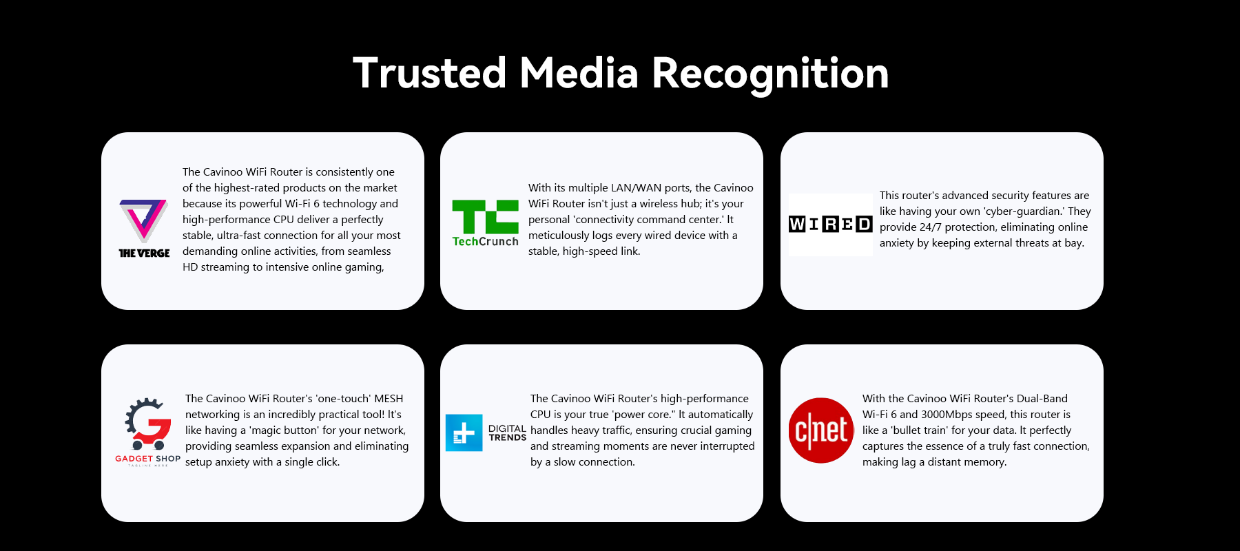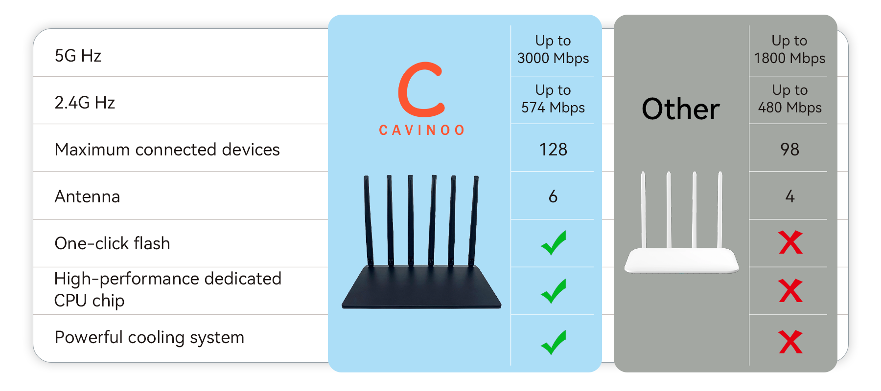 The result is the Cavinoo WiFi Router, built with a high-performance chip and powerful WiFi 6 technology to ensure you get a fast and stable network for every device, every time. This is Cavinoo’s core mission: that when it matters most, your network will never let you down.